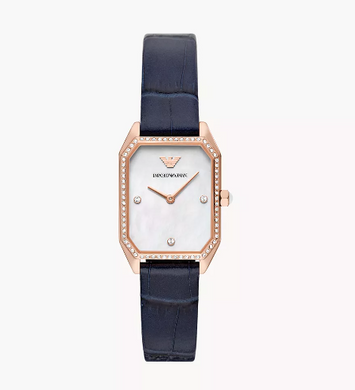 E. ARMANI Two-Hand Blue Leather Watch