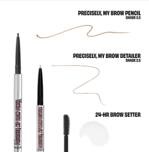 What’s all the brow hoop-la? Oh, you know, just a trio of all your defining, detailing & setting necessities for brows. Dive into precision with two full-size pencils: Precisely, My Brow Pencil for defined, hair-like strokes and Precisely, My Brow Detailer for microfine lines and precise detailing. Then, lock it all in with 24-HR Brow Setter, a flake-free clear gel that holds strong all day